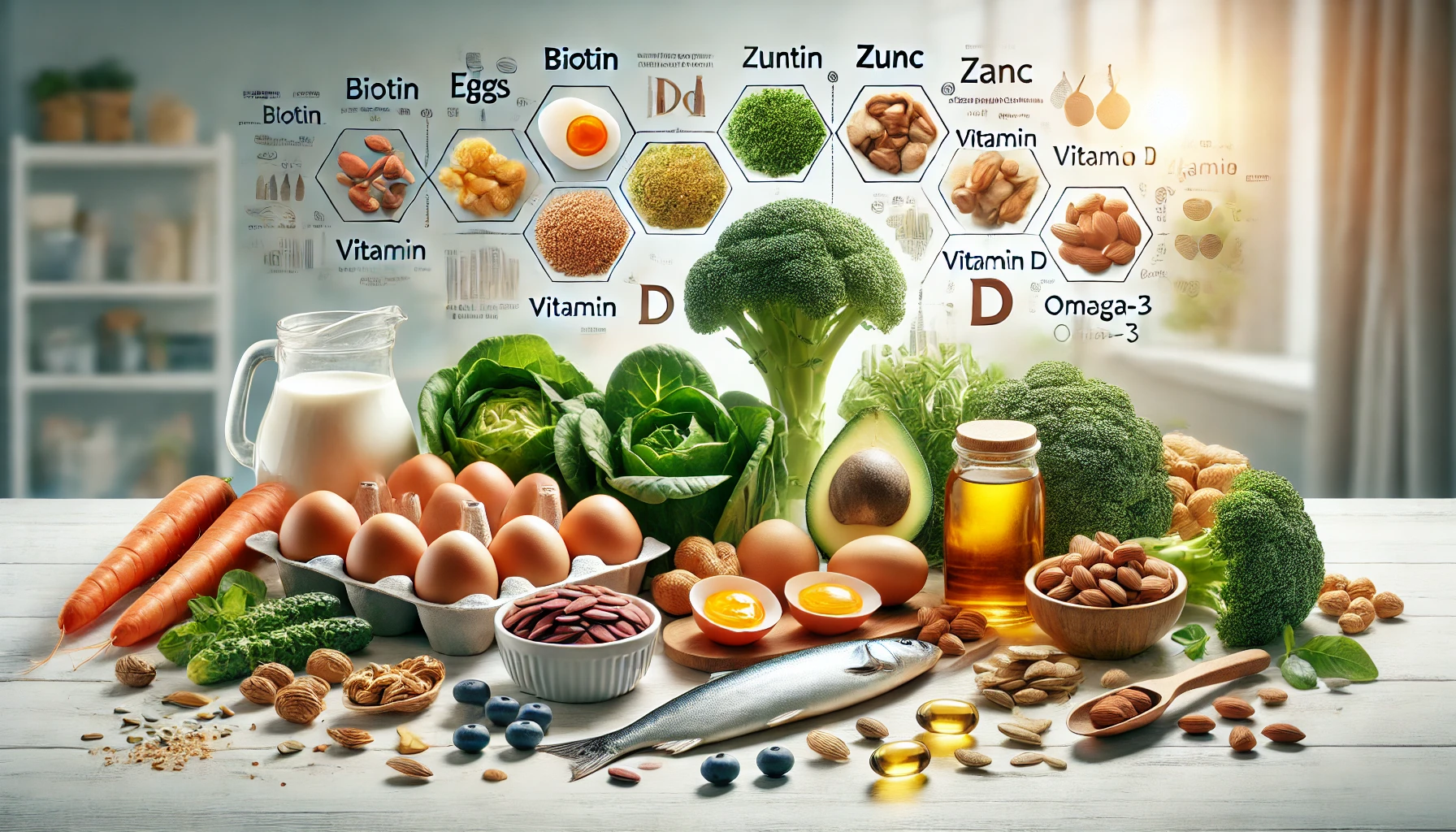 - 달걀 노른자: 비오틴 함량이 높은 식품 중 하나로, 모발 건강을 촉진하는 데 효과적입니다.